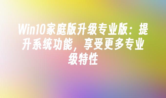 Win10家庭版升级专业版:提升系统功能,享受更多专业级特性