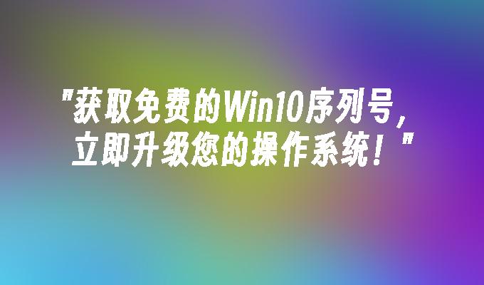 获取免费的Win10序列号,尽在本站!立即查找并激活您的Windows10操作系统。我们提供最新、有效的序列号,确保您的计算机正常运行。快来免费获取Win10序列号,畅享顺畅的操作体验!