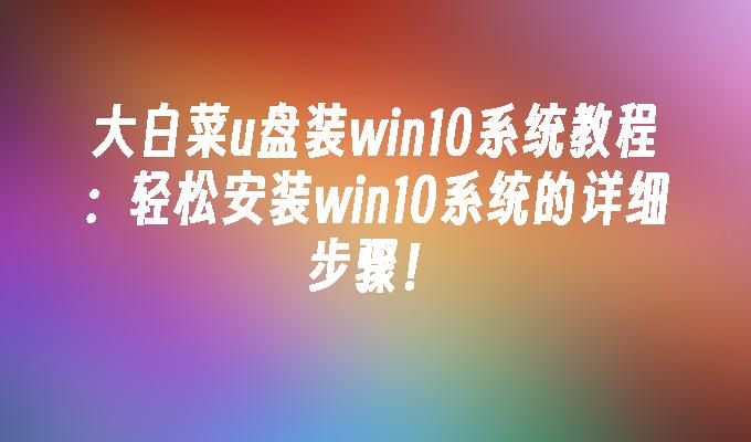 2023-08-18 10:27:02 一键装机win10纯净版 一键装机win10 win10纯净版大白菜u盘装win10系统教程:轻松安装win10系统的详细步骤!