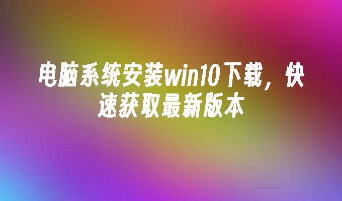 电脑系统安装Win10下载,提供最新稳定版本下载,操作简便,安全可靠。快速安装Win10系统,享受流畅体验。立即下载,畅玩Win10!