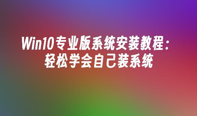 Win10专业版系统安装教程:轻松学会自己装系统