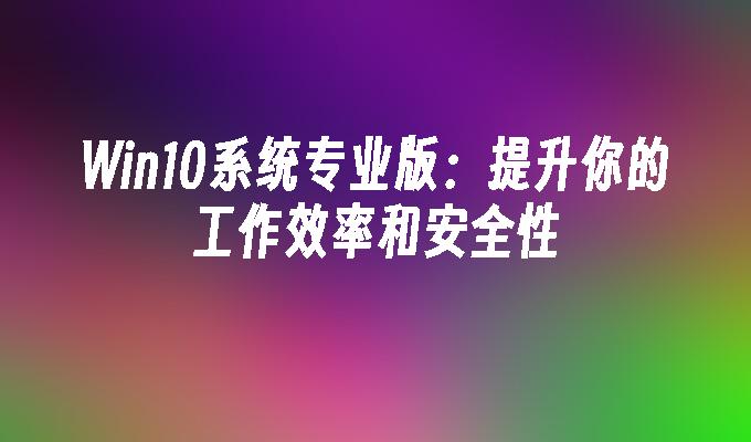 Win10系统专业版是微软公司推出的一款操作系统,具有稳定性高、安全性强、功能丰富等特点。欢迎了解Win10系统专业版的安装、升级、优化等相关内容,让您的电脑运行更加流畅稳定。