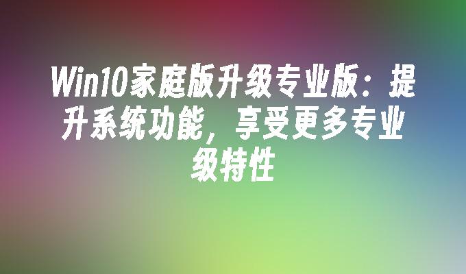 Win10家庭版升级专业版,享受更多功能与性能提升。了解升级方法、步骤及注意事项,让您的电脑更加高效。快速、简单、稳定的升级过程,让您轻松拥有专业版的强大功能。立即升级,体验全新的操作系统。