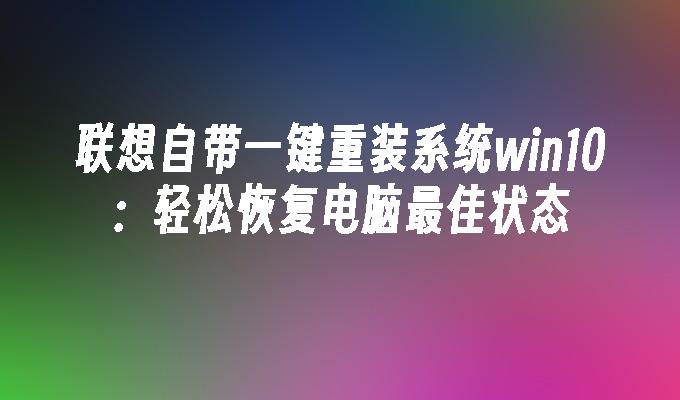 联想自带一键重装系统win10:轻松恢复电脑最佳状态