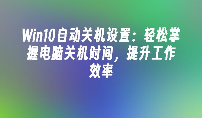 了解如何在Win10中设置自动关机。通过简单的步骤,您可以轻松地为您的计算机设置定时关机功能。这将帮助您节省能源并保护您的设备。立即了解更多!