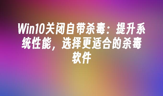 Win10关闭自带杀毒功能,提升系统性能,保护隐私安全。快速了解关闭方法,避免冲突与资源占用。详细步骤及注意事项,尽在本文。