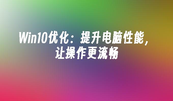 Win10优化,让你的电脑更快更稳定!了解如何通过简单的步骤优化你的Windows10系统,提升性能和效率。从清理垃圾文件到优化启动项,我们提供全面的指南,让你的电脑焕发新生!快来了解Win10优化的最佳实践,让你的电脑始终保持最佳状态!