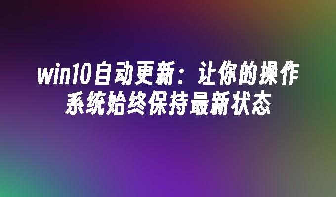 Win10自动更新:了解Win10自动更新的最新信息和设置方法。优化您的系统,确保您始终享受到最新的功能和安全性。立即了解如何管理自动更新设置,以便更好地掌控您的计算机体验。