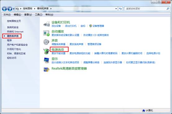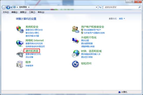 2.点击“硬件和声音”