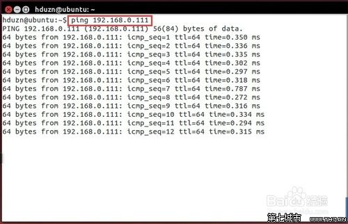 修改完成后,再回到虚拟机系统中,在终端中输入命令:ping 192.168.0.111,可以看到已经可以正常ping通了。