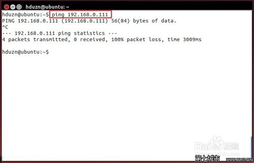 在终端中输入命令:ping 192.168.0.111,等了很久也没ping通。