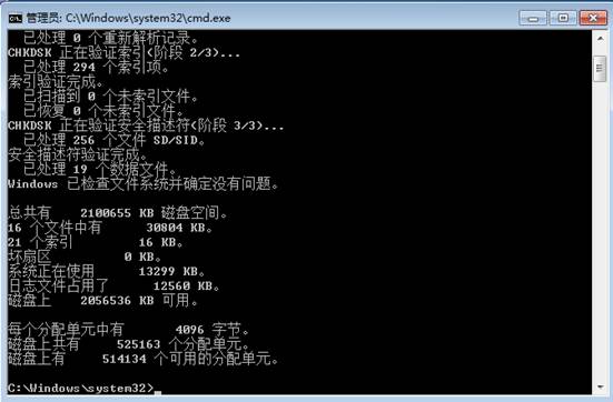 随后系统便会自动检查并修复出现问题的磁盘了,如图所示: