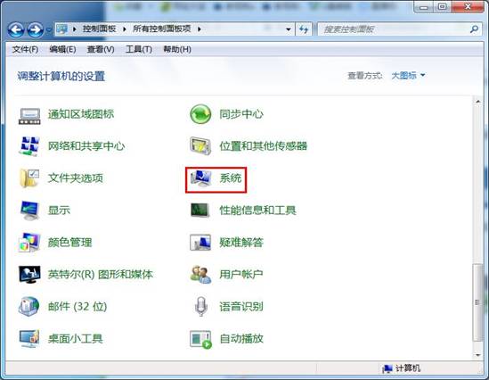 2、接着点击控制面板中的“系统”,如下图所示: