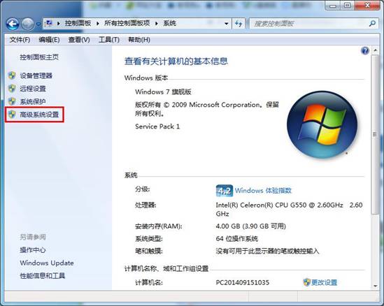 3、进入系统页面后,找到并点击“高级系统设置”,如下图所示: