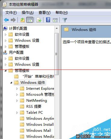 3、在“组策略”窗口依次展开:用户配置 > 管理模板 > Windows组件 > Windows资源管理器。如图,先找到“用户配置”-“管理模板”