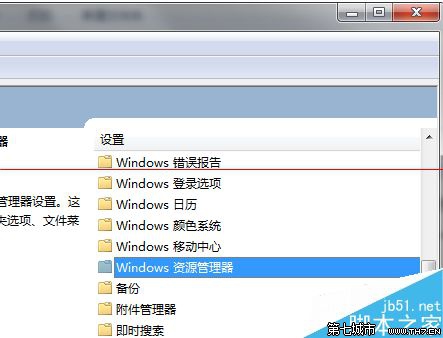 5、再在右侧找到“Windows 资源管理器”,双击打开它