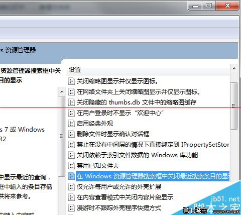 6、最后找到“在 Windows 资源管理器搜索框中关闭最近搜索条目的显示”项,双击打开它