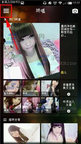 1)打开【咚呱】app,点击左上角的图标【三】。