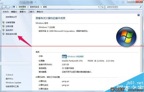 2、在界面的左侧点击“高级系统设置”。