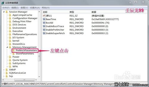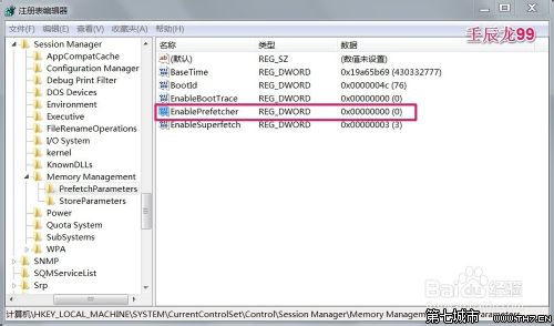 6、回到注册表编辑器窗口,我们可见:EnablePrefetcher的REG _DWORD值为:“0”,退出注册表编辑器。