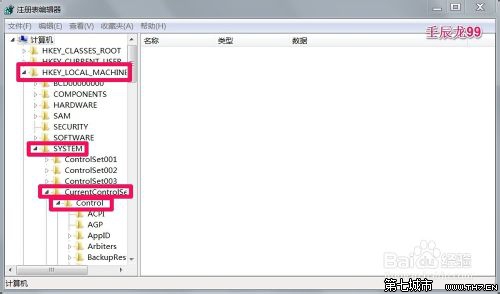 2、我们在打开的注册表编辑器窗口,依次展开:HKEY_LOCAL_MACHINE/SYSTEM/CurrentControlSet/Control ;
