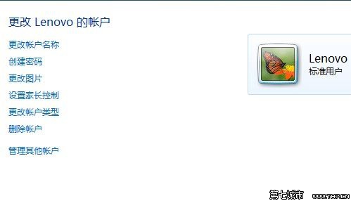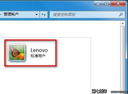 8,这时在“管理账户”中便会多出一个名叫:Lenovo的账户,即为刚才创建的新账户,级别为:标准用户。