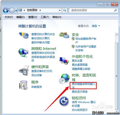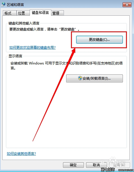 在区域和语言设置窗口里点击“更改键盘” 如图