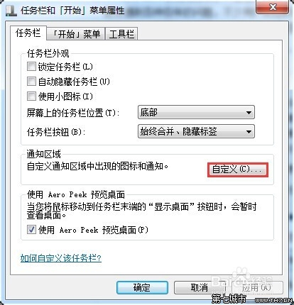 2、在弹出的窗口中,我们在通知区域中选择“自定义”,如图所示: