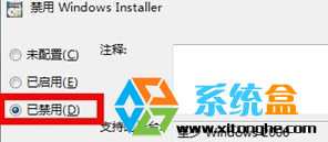 3、选中Windows installer 后,我们就可以在右侧窗口中找到一项 禁用windows installer 的选项;