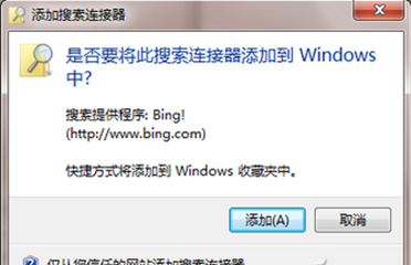 访问http://www.sevenforums.com/tutorials/742-windows-7-search-federation- providers.html,可以在这里找到许多现成的搜索连接器,包括Bing、Yahoo、MSNSearch、Google等都可以在这里找到,单击相应的搜索图标,IE会自动下载指定搜索连接器的.osdx,如图1所示,单击“添加”按钮即可完成安装。