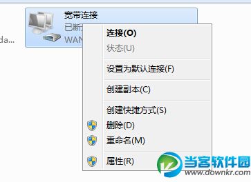 步骤三:然后你在该网络连接界面中,找到你上网要用到的宽带连接图标。再单击该宽带图标,选择“属性”。