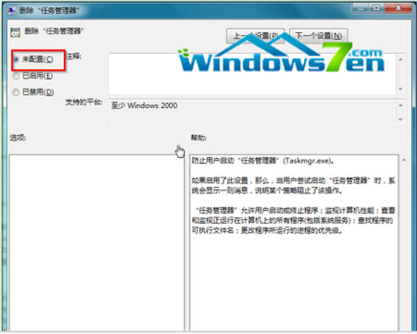 3、在弹出来的设置界面中,选择“未配置”或“已禁用”,然后点击确定按钮保存退出就可以了。如图3所示