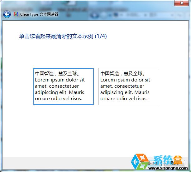 4、然后win7系统会按照步骤引导大家选择你觉得合适的清晰度,我们只需要选择自己觉得最清晰的文本就可以。