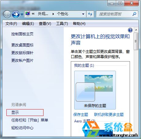 2、紧接着在个性化设置页面,点击左侧的“显示”选项;