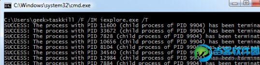 2.在命令提示符窗口中,咱们输入代码taskkill /F /IM iexplore.exe并单击回车。