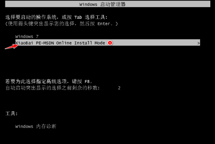 5、重启后在启动管理器中选择第二项进入xiaobai PE系统。