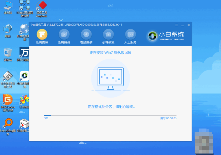 6、在PE系统中小白装机工具会自动开始安装系统,我们只需耐心等待安装即可。