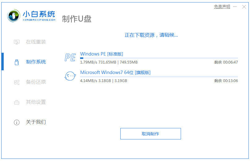 步骤六:然后选择是否下载系统,假如你没有下载系统镜像则可以勾选自己想装的系统点击下载系统且制作U盘,已经下载了系统的话就点击取消下载且制作U盘,然后制作完成后将系统放到U盘里面。