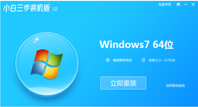 步骤一:我们首先打开【小白三步装机】软件,这个时候会自动匹配相应的系统,接着按【立即重装】。