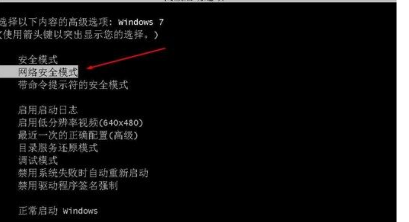 2、重新开机按f8键进入到高级启动选项,找到“带网络的安全模式”进入。