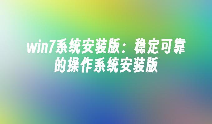 简介:Win7系统安装版是一款稳定可靠的操作系统安装版,它为用户提供了优秀的性能和良好的用户体验。本文将从多个方面对Win7系统安装版进行详细阐述,介绍其特点和优势,帮助读者了解和使用这一操作系统。