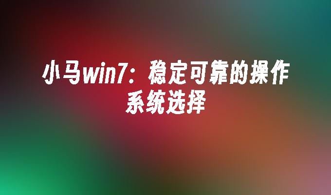 简介:在选择操作系统时,小马win7是一个稳定可靠的选择。本文将从多个方面对小马win7进行详细阐述,包括其工具原料、功能特点、使用方法等,以帮助读者更好地了解和使用这个操作系统。