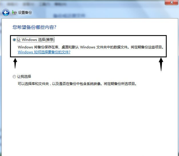 5、到这里,选择【让 Windows选择 (推荐)】这个选项;如果你不需要备份其他软件的话,可以点击【让我选择】,并进行下一步。