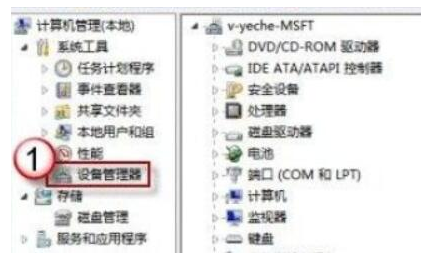 三、点击左边“设备管理器”。