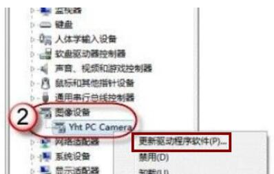 四、打开图像设备下的摄像头,右键选择“更新驱动程序软件”。