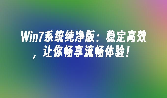 Win7系统纯净版:稳定高效,让你畅享流畅体验!