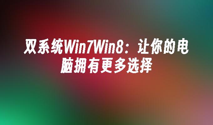 通过安装双系统Win7Win8,我们可以在同一台电脑上拥有更多选择。安装双系统可以满足不同需求,比如在Windows 7下进行游戏,而在Windows 8下进行办公。使用EasyBCD可以方便地切换系统,并且通过优化系统选择可以提升电脑性能。建议在安装双系统前备份重要数据,并定期清理垃圾文件以保持系统的良好运行。
