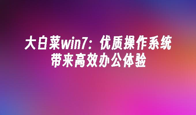 简介:大白菜win7:优质操作系统带来高效办公体验