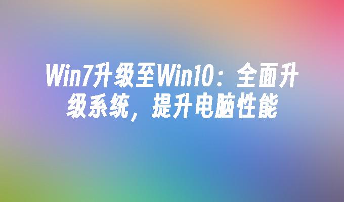 简介:本文将介绍如何将Win7升级至Win10,全面升级系统,提升电脑性能。通过升级操作系统,可以获得更好的用户体验和更高的工作效率。