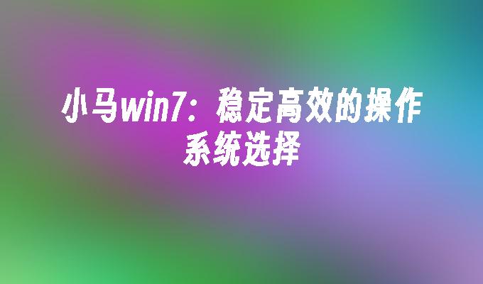 总结:小马win7是一个稳定高效的操作系统选择。它具有稳定性和高效性,用户界面友好,兼容性强,安全性保障。在选择操作系统时,小马win7是一个值得考虑的优秀选择。